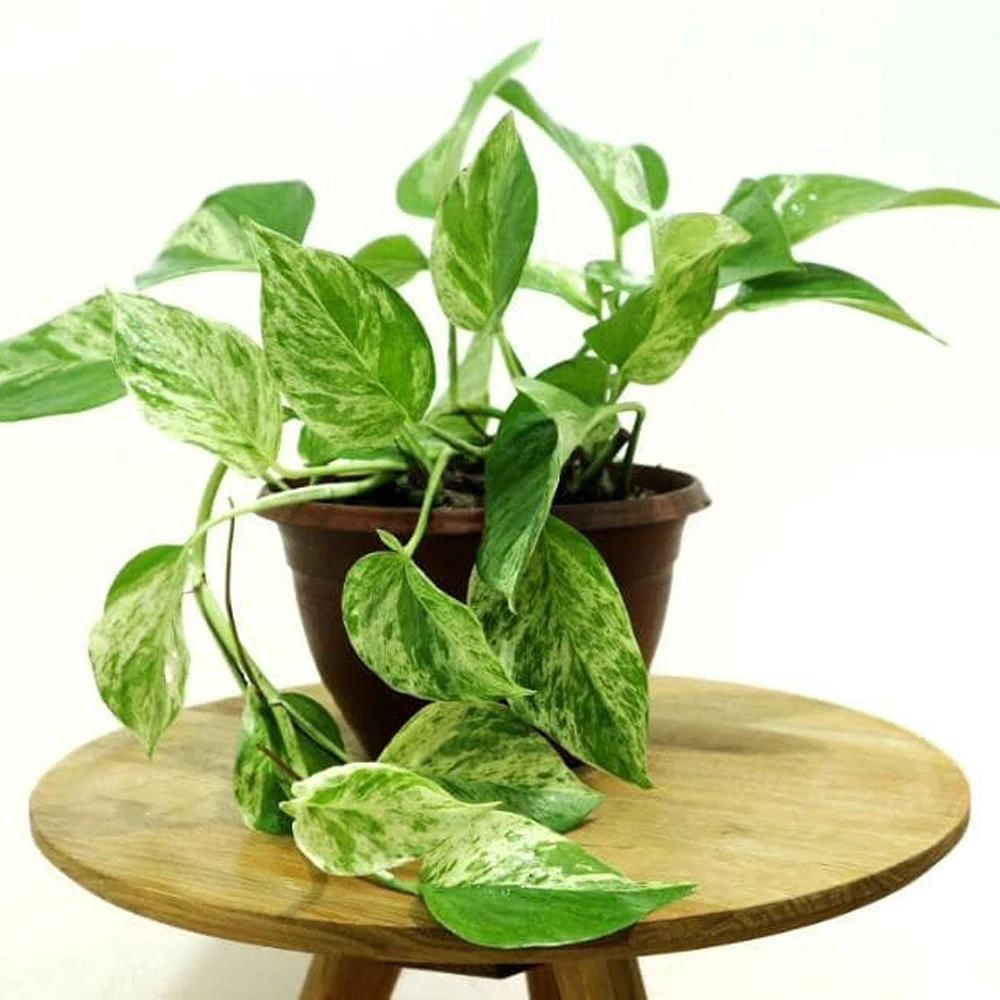 Marble Queen Pothos Plants are the easiest houseplants to grow, even if your ‘green thumb’ tends to turn plants brown and black. Adorable heart shaped leaves are covered in a dark green, and splashes of cream colors give it a spectacular marbled look! This super easy plant will steal your heart with it’s own heart shaped leaves. This plant prefers indirect, bright light, but can handle just about anything. If you notice the marbled color starts to fade, it will need some more sun, but if the plant looks pale, consider taking it away from the light source for a while. The soil should dry out between watering, and the roots can rot if over watered. Scientists agree that this plant is very easy to grow, some say that it will keep growing through anything, even if left in the dark!
