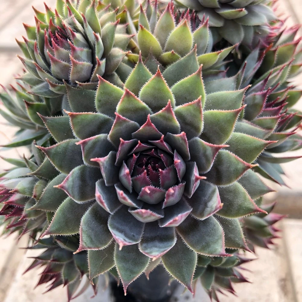 These popular succulents never seem to go out of style, and with its beautiful symmetry the Red Beauty Sempervivum is always a great choice. Featuring gray-green leaves with a frosty tone, in cool weather the pointed tips respond by fading a deep, dark shade of red. These no fuss little plants thrive on a little neglect and work perfectly in mixed containers, edging or peeking through the rocks and pebbles of a pathway.